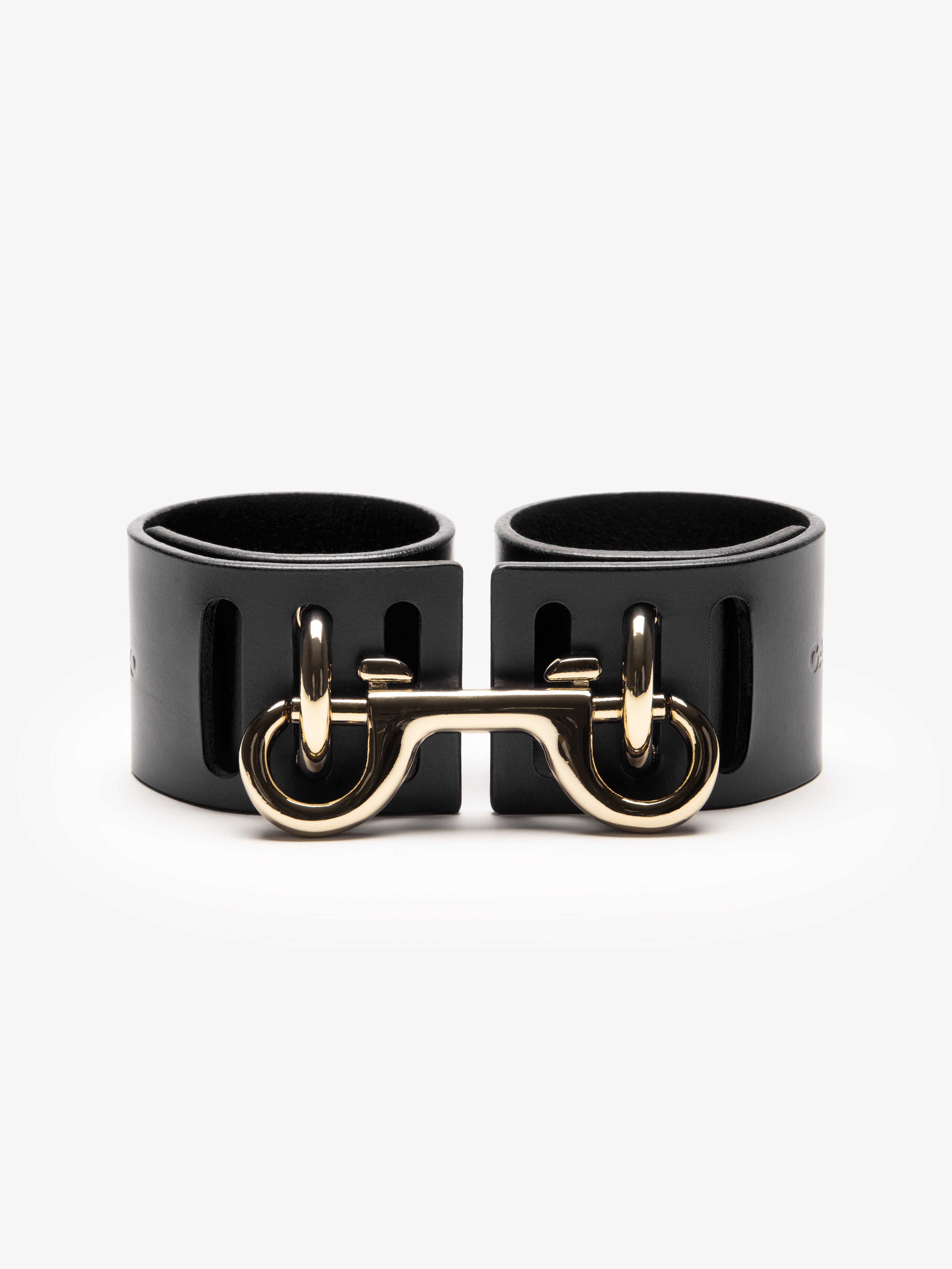 Choose between the Single Set or the Couple Set, which includes both bracelets, two circular carabiners, the connecting double carabiner, and the signature Traversi Pouch Bag.