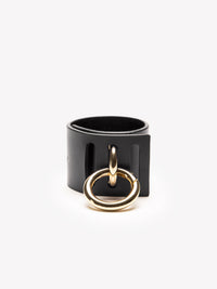 The circular carabiner hooks onto the bridge, offering an adjustable closure with three positions.