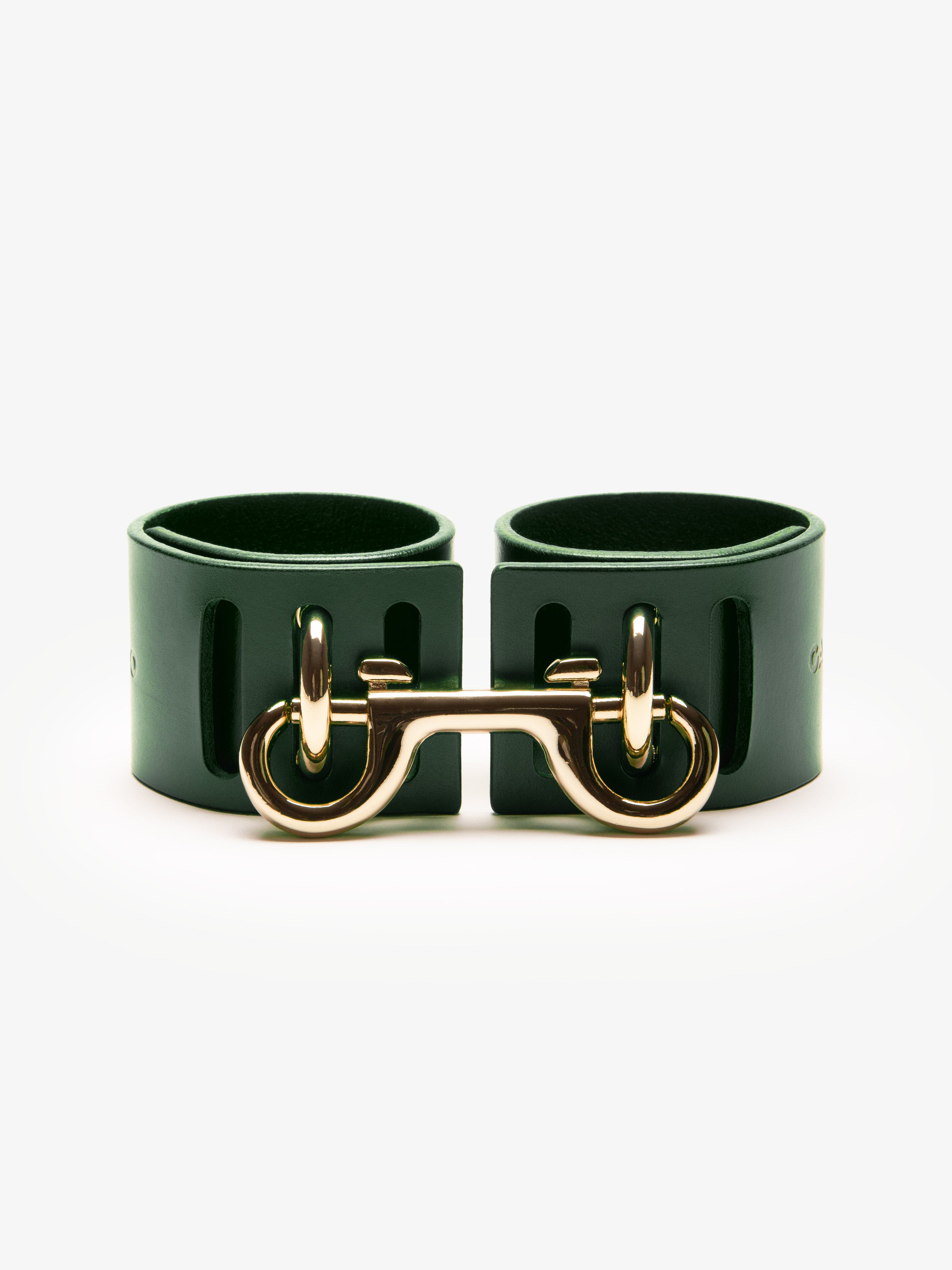 Choose between the Single Set or the Couple Set, which includes both bracelets, two circular carabiners, the connecting double carabiner, and the signature Traversi Pouch Bag.