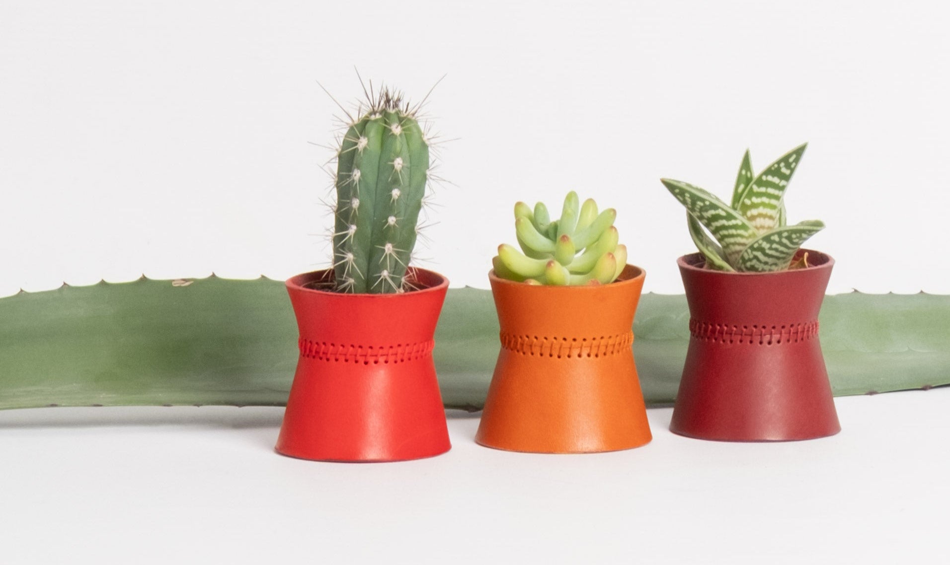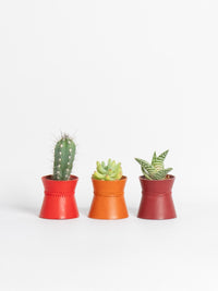 A mini leather planter that celebrates materiality and abundance.