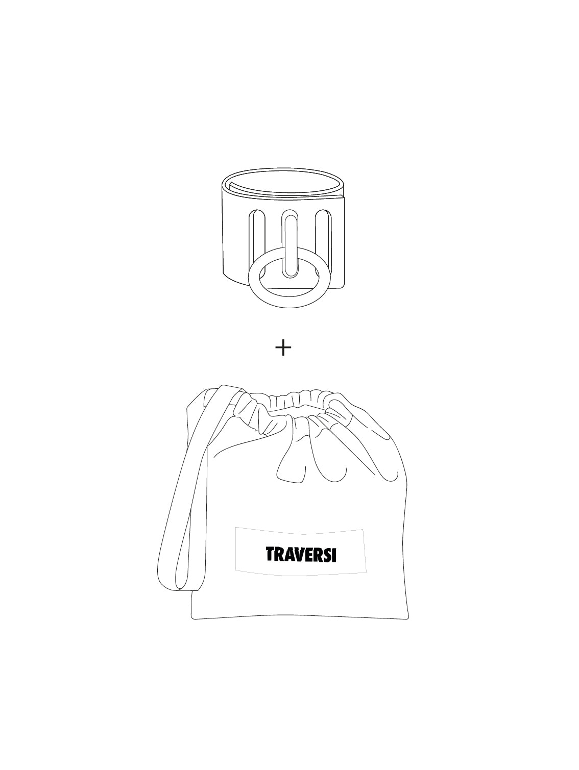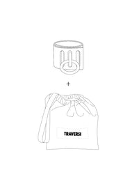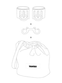 Choose between the Single Set or the Couple Set, which includes both bracelets, the connecting double carabiner, and the signature Traversi Pouch Bag.