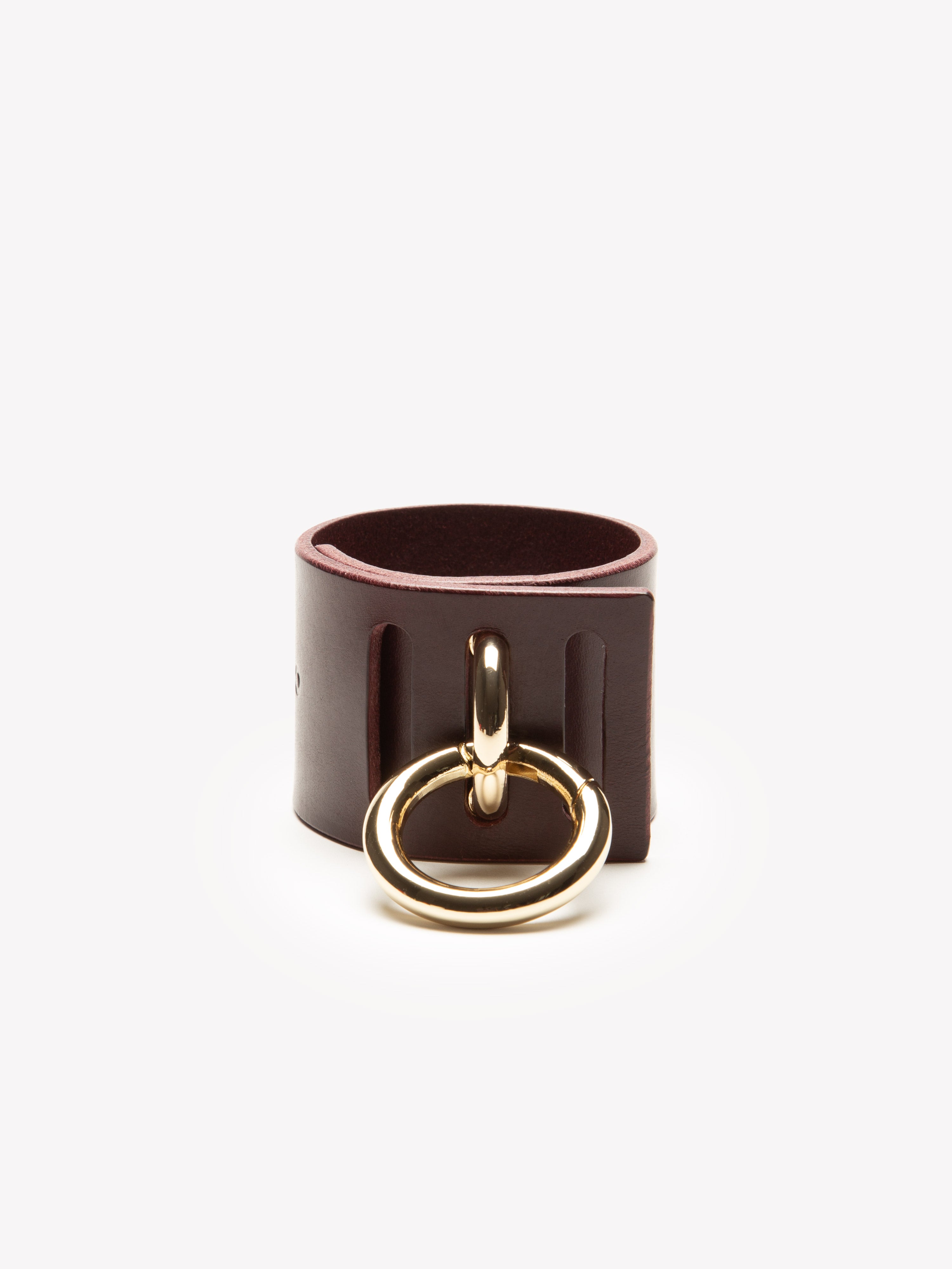 The circular carabiner hooks onto the bridge, offering an adjustable closure with three positions.